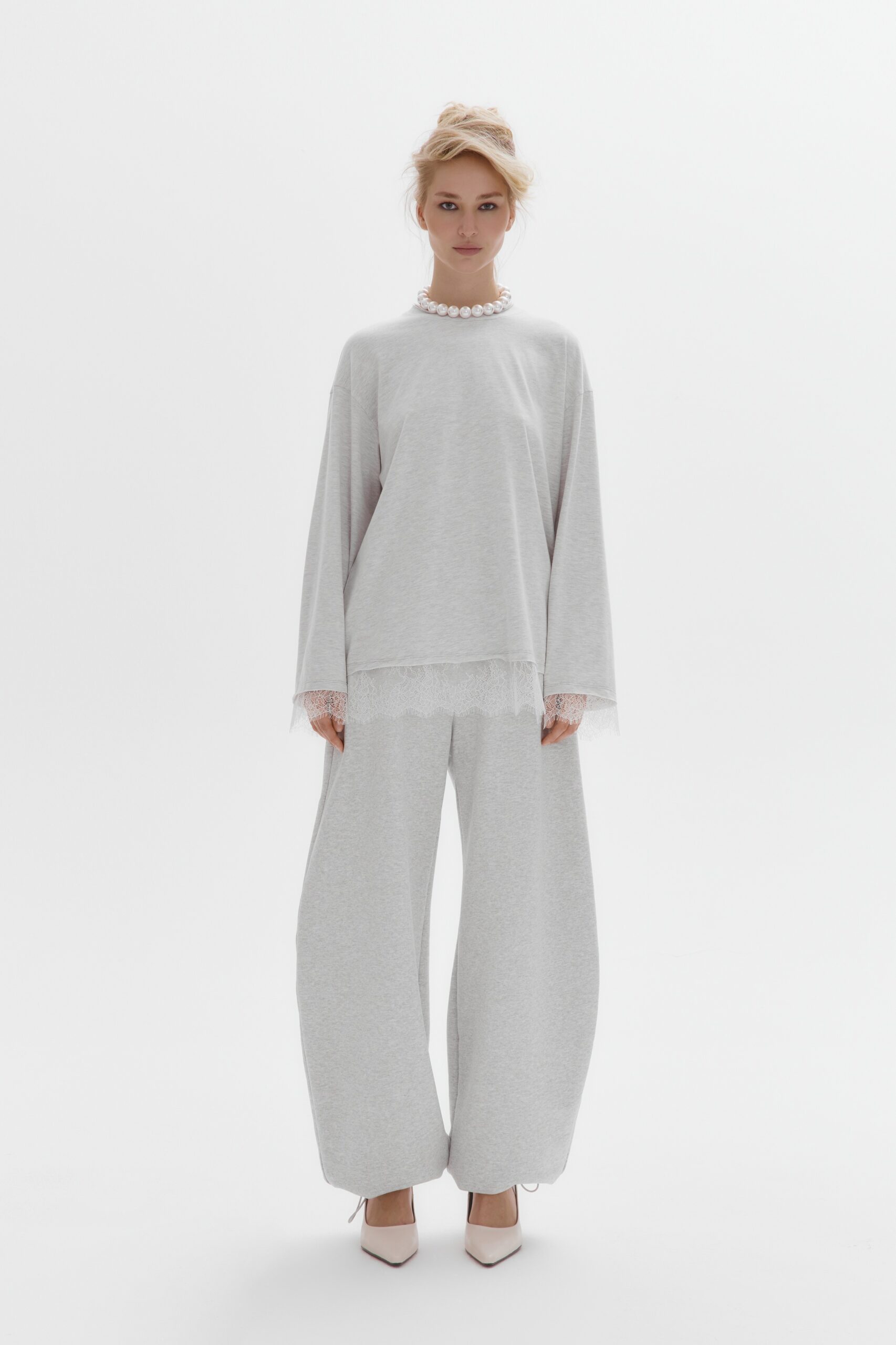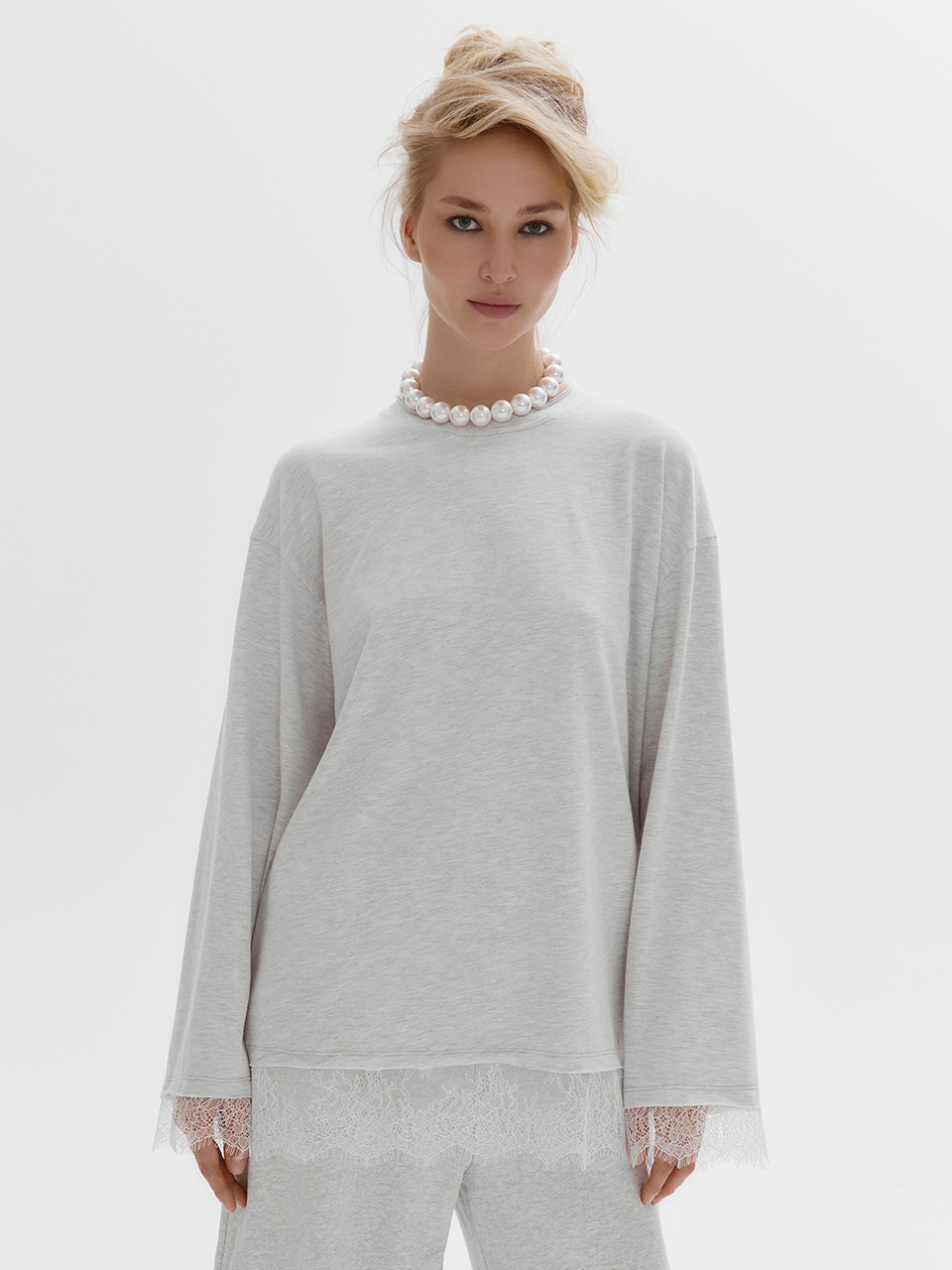 Лонгслив LACE LINES (серый меланж)