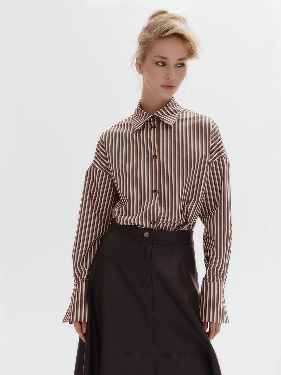 Рубашка Loose Fit в полоску (коричневый)