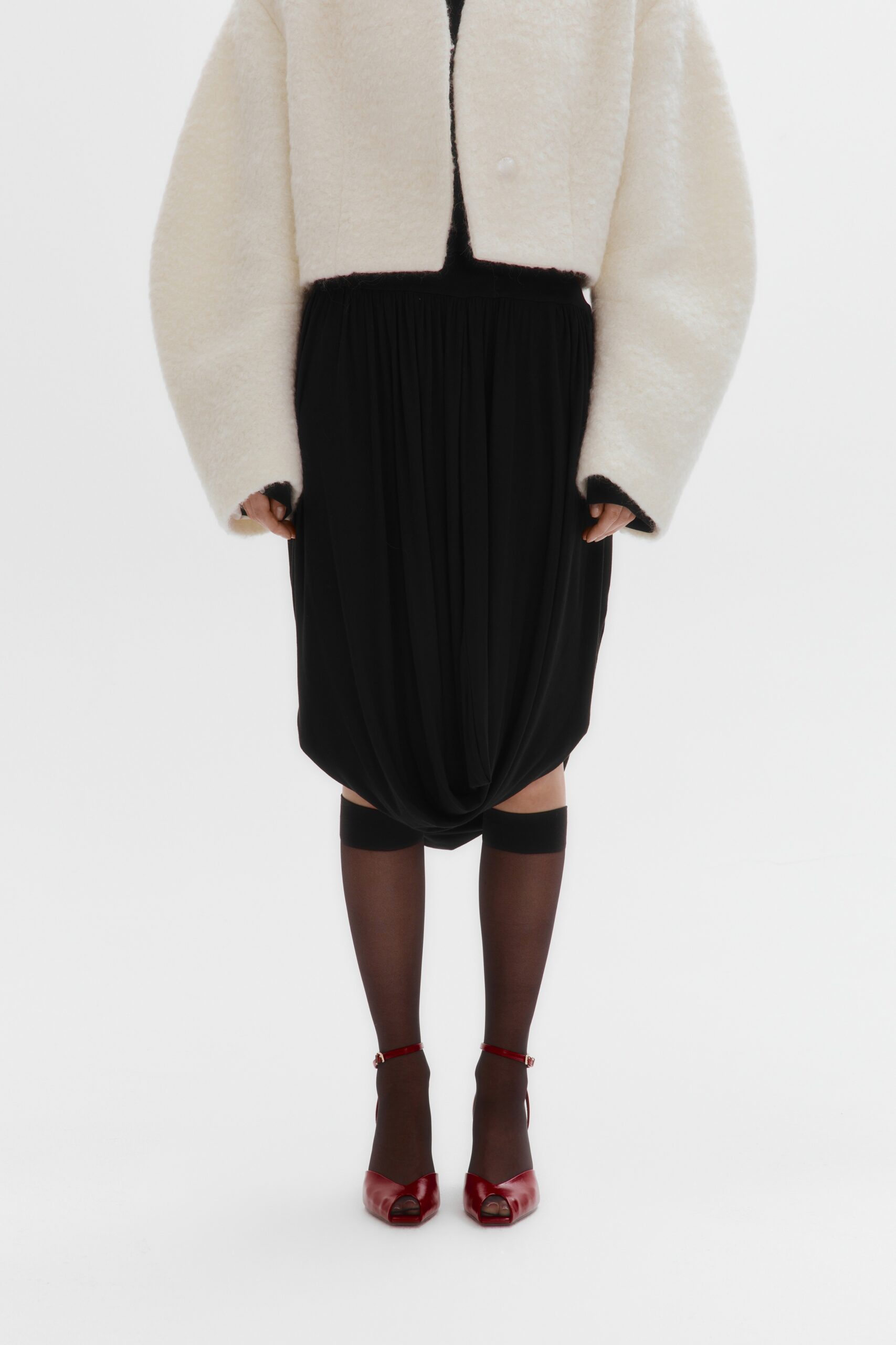 Трикотажная юбка с драпировками (белый)