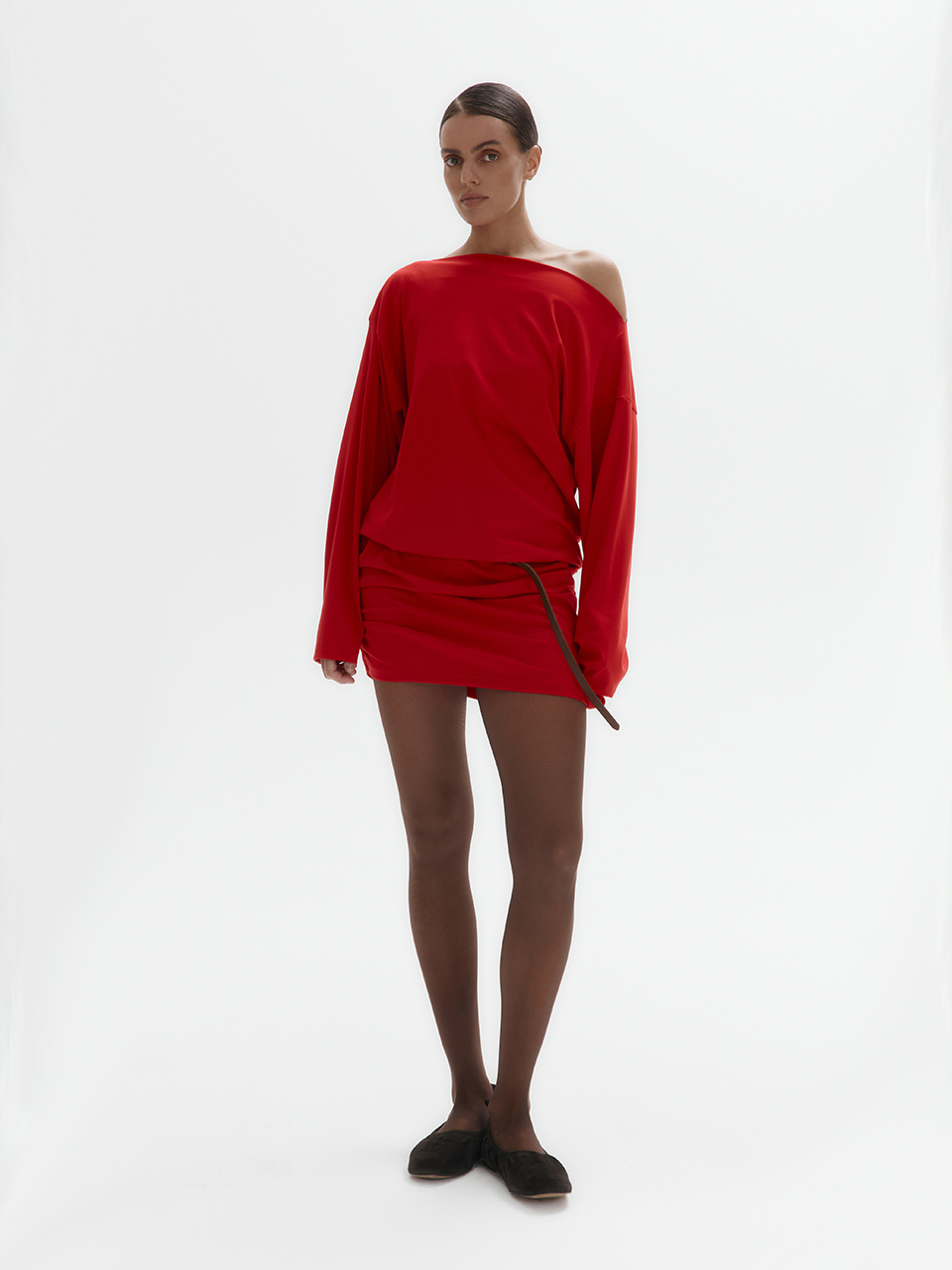 Трикотажное платье мини (красный)