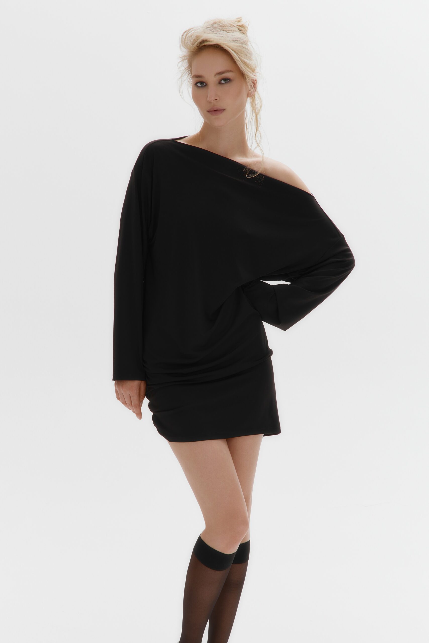 Трикотажное платье мини (черный)