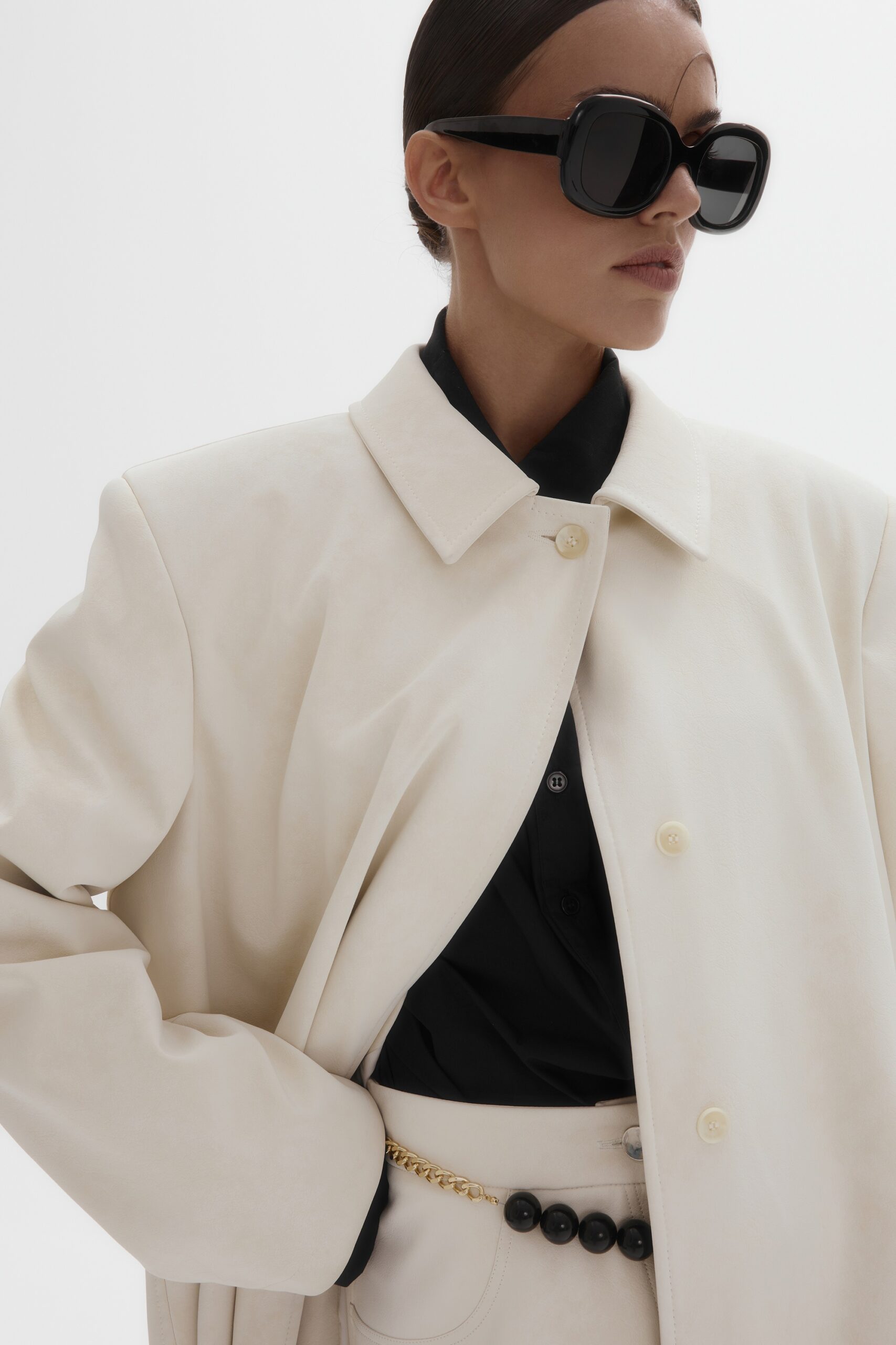 Юбка А-силуэта из эко-кожи (айвори)