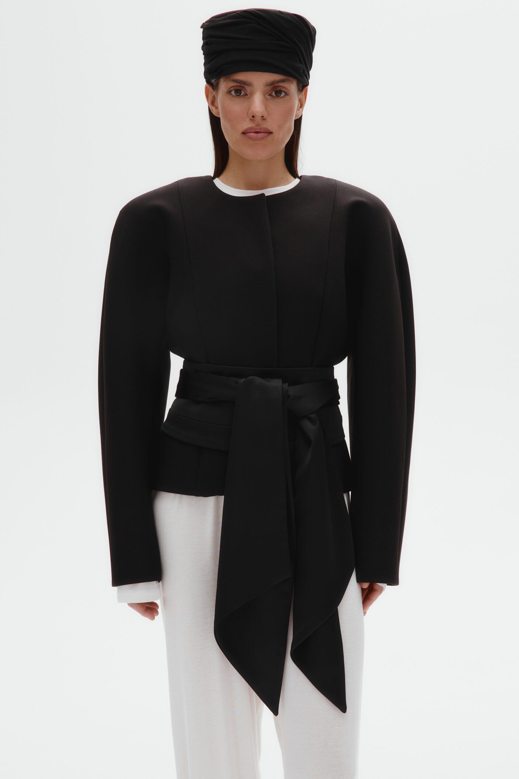 Силуэтный топ-корсет с буфами (черный)