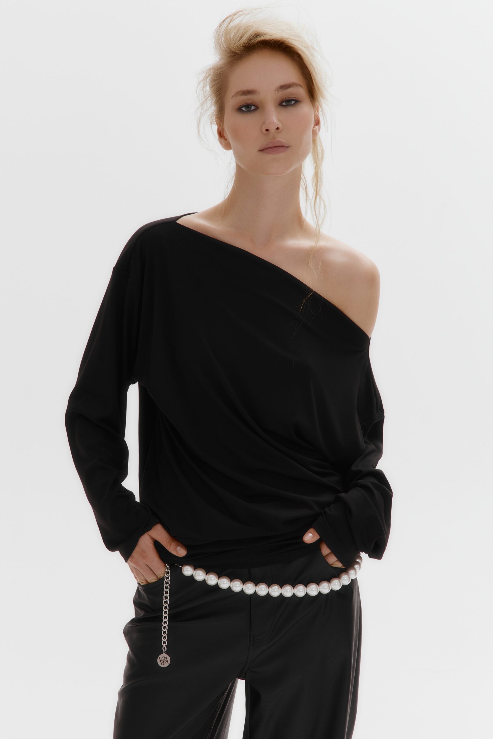 Тонкая нить цепи, струящаяся вдоль талии. На ней, словно жемчужные облака, покоятся перламутровые сферы органического жемчуга Majorica. Лаконичный акцент, где органичность жемчуга и холодное сияние серебра сплетаются в нежную, но выразительную поэзию.