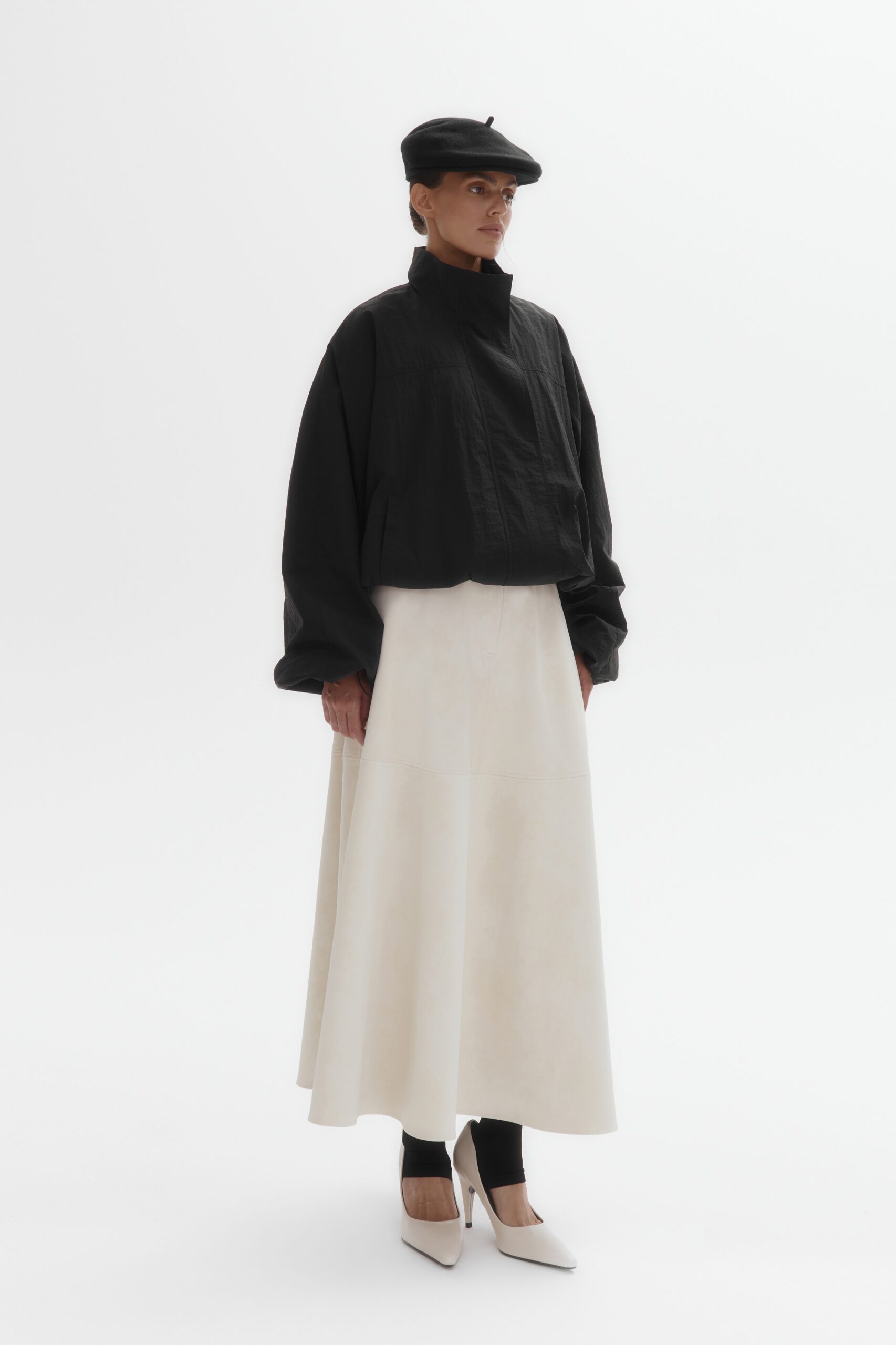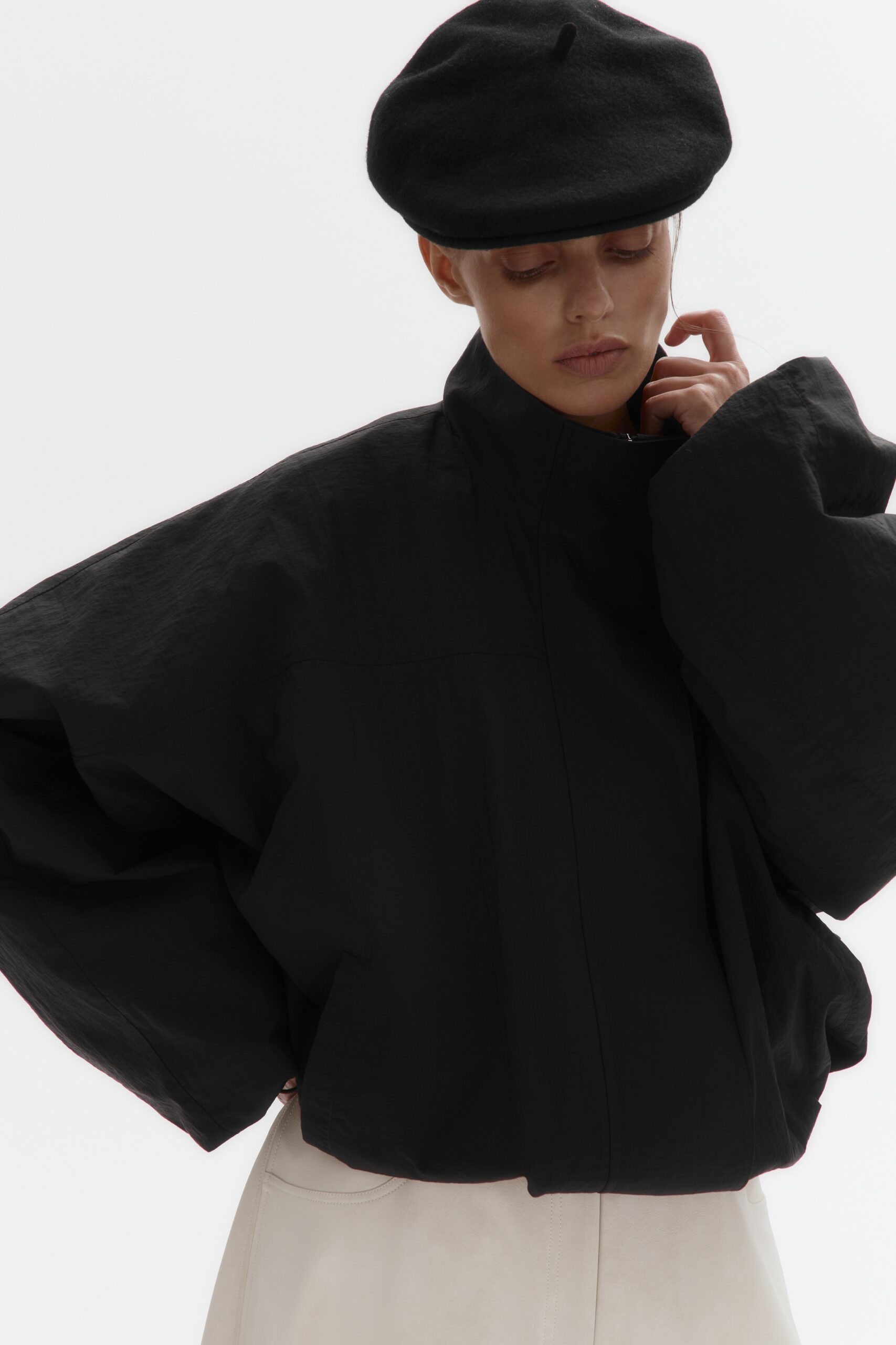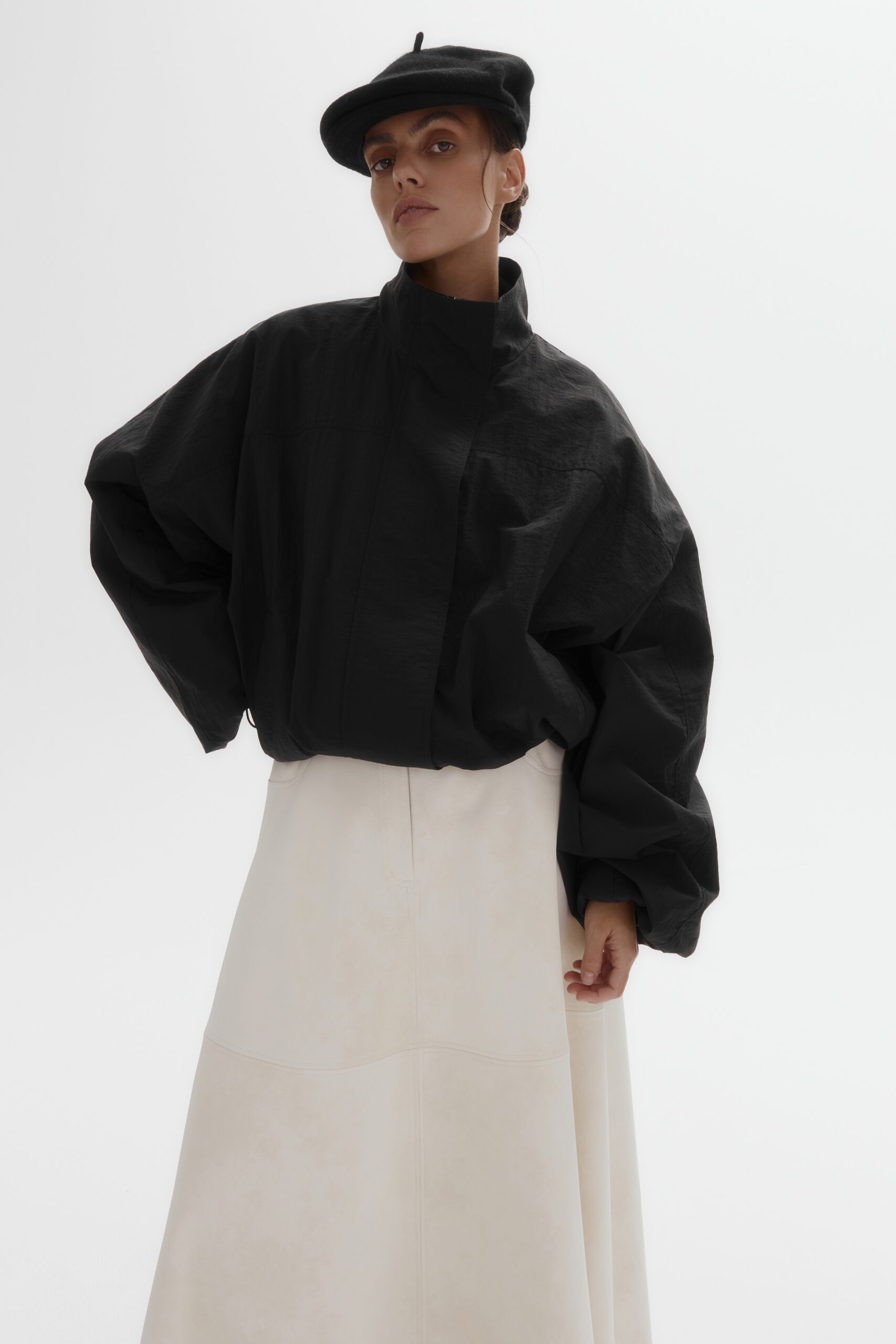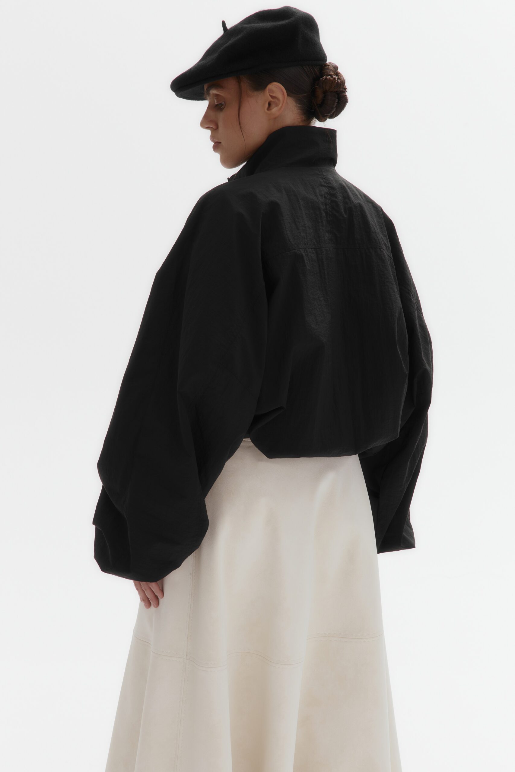 Магнитная планка, скрывающая застежку, обеспечивает чистоту линий и элегантность. Легкая объемность кроя, и деликатные кулиски на манжетах и подоле позволяют идеально настроить посадку по настроению.