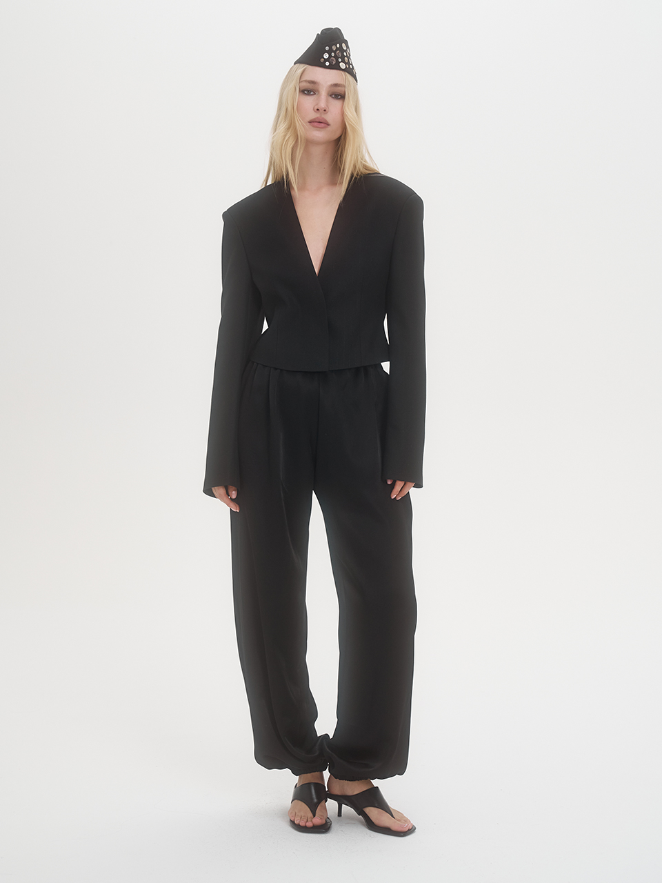 Укороченный приталенный жакет (черный)