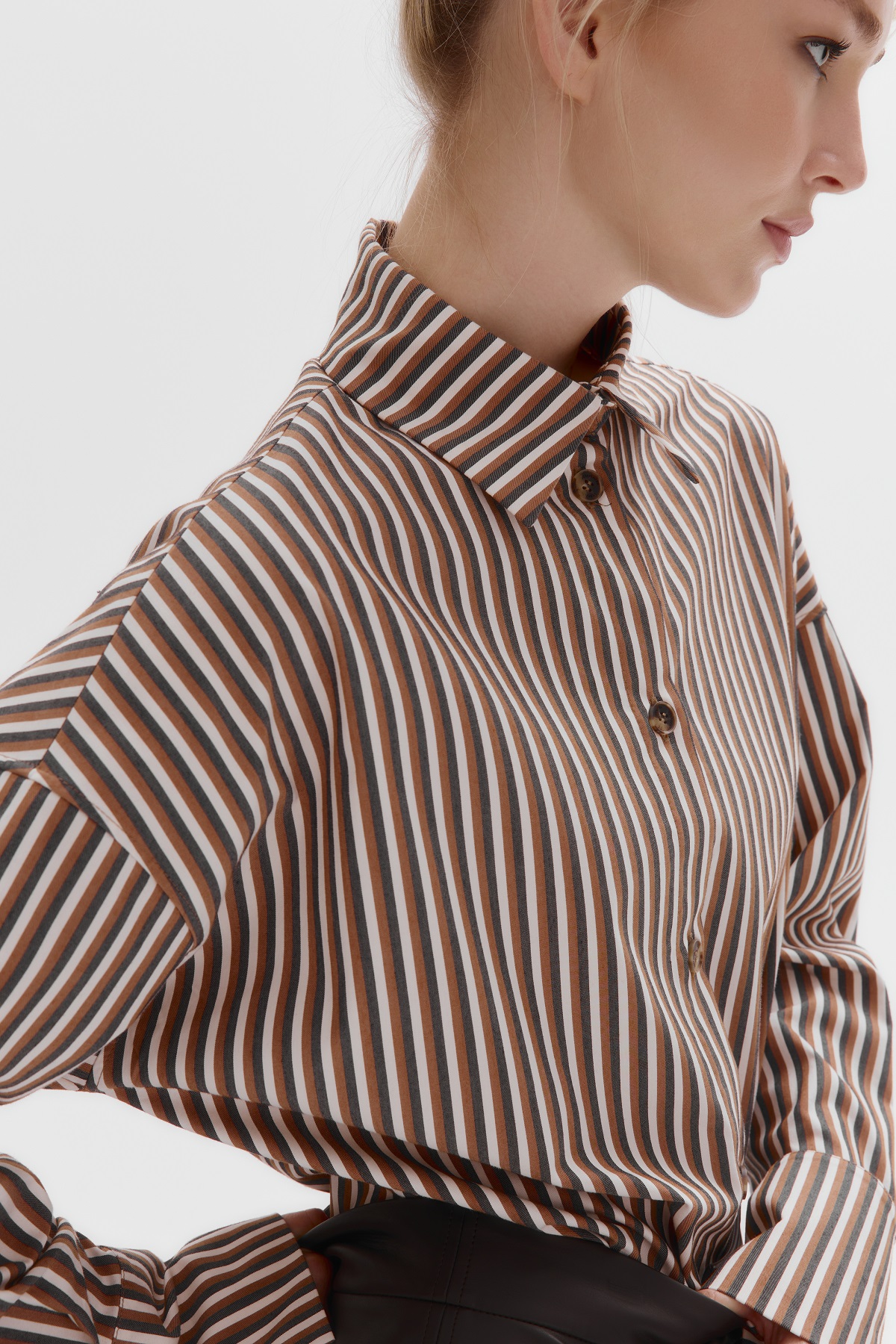Рубашка Loose Fit в полоску (коричневый)