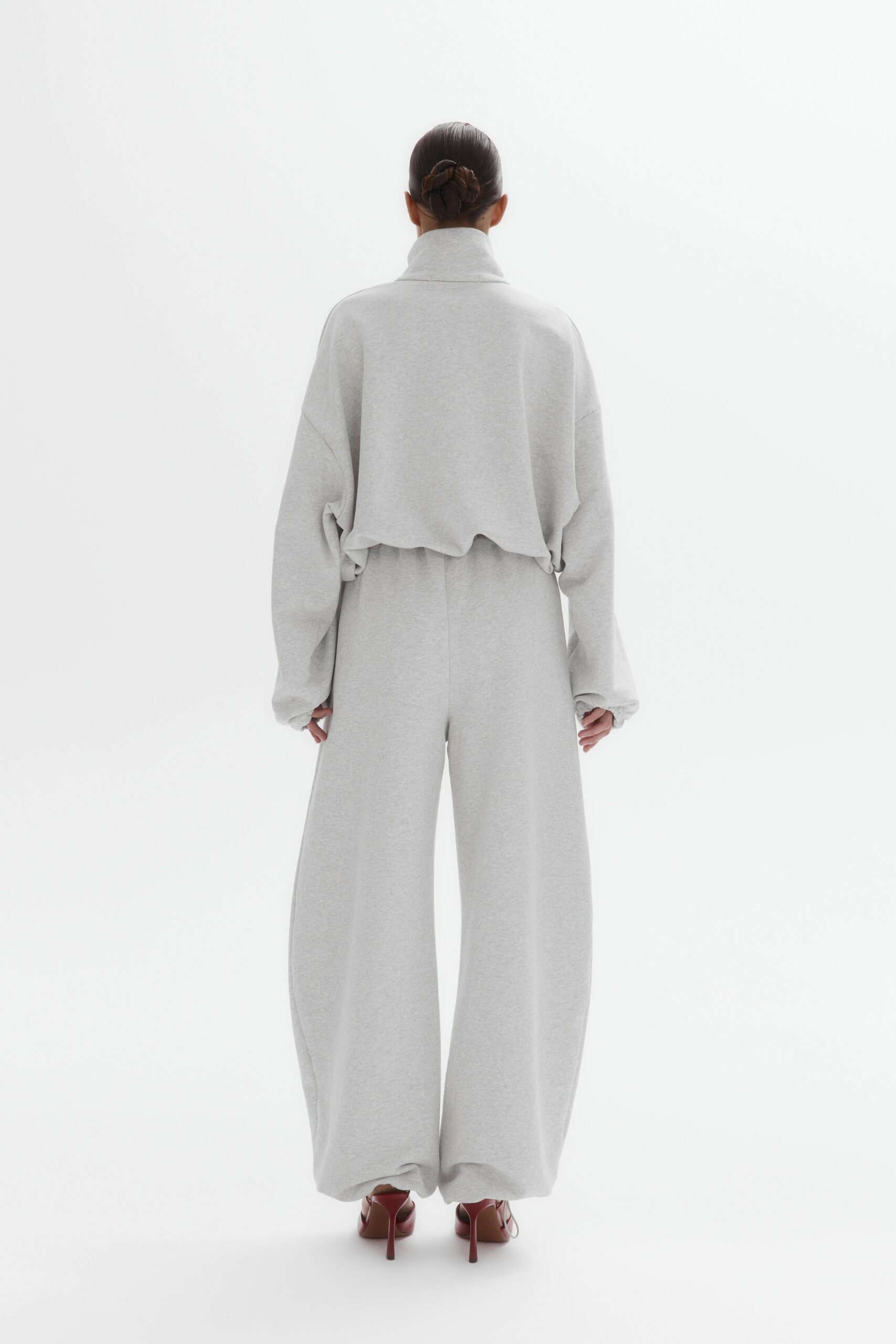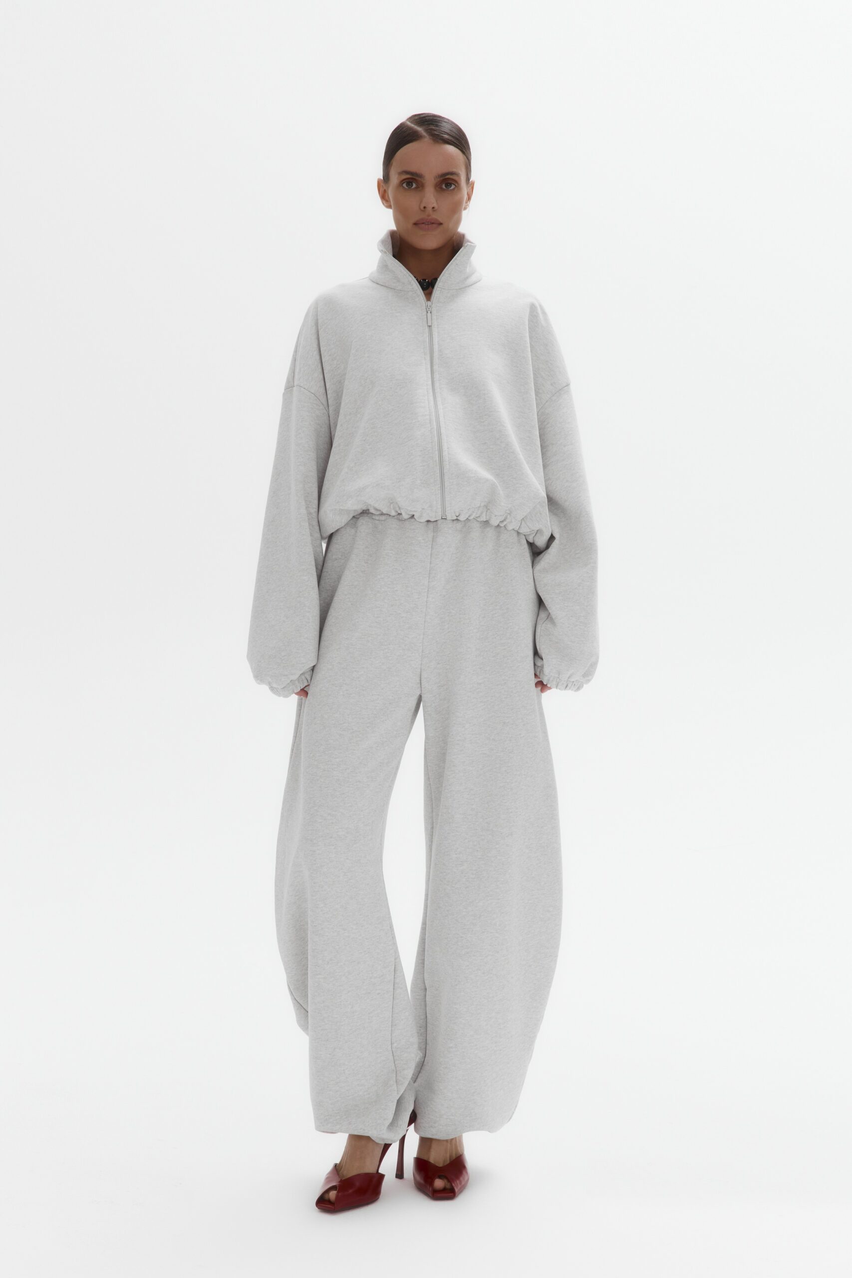 Укороченный full-zip свитшот (серый меланж)