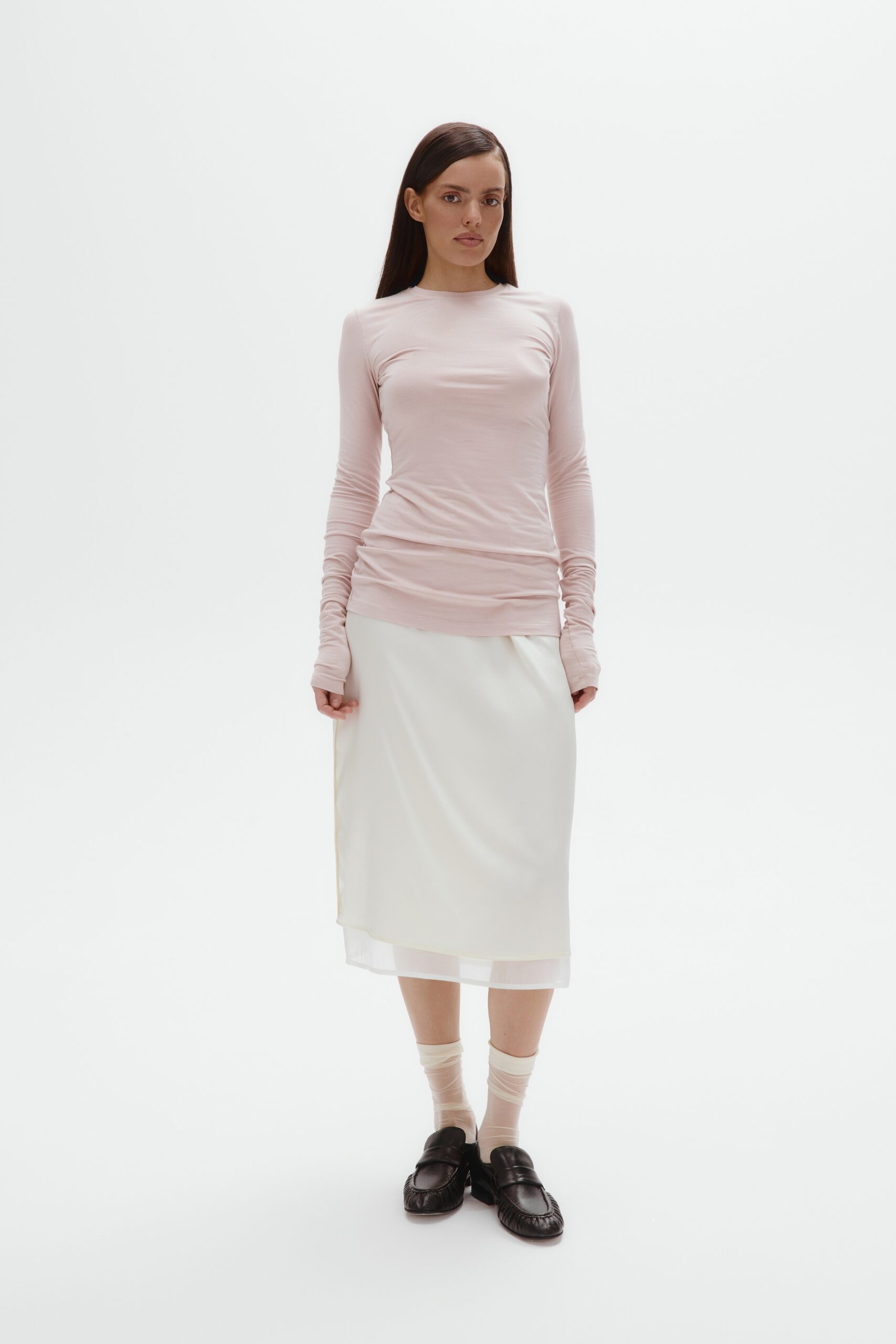 Удлиненный джемпер из тонкого трикотажа (пудровый)