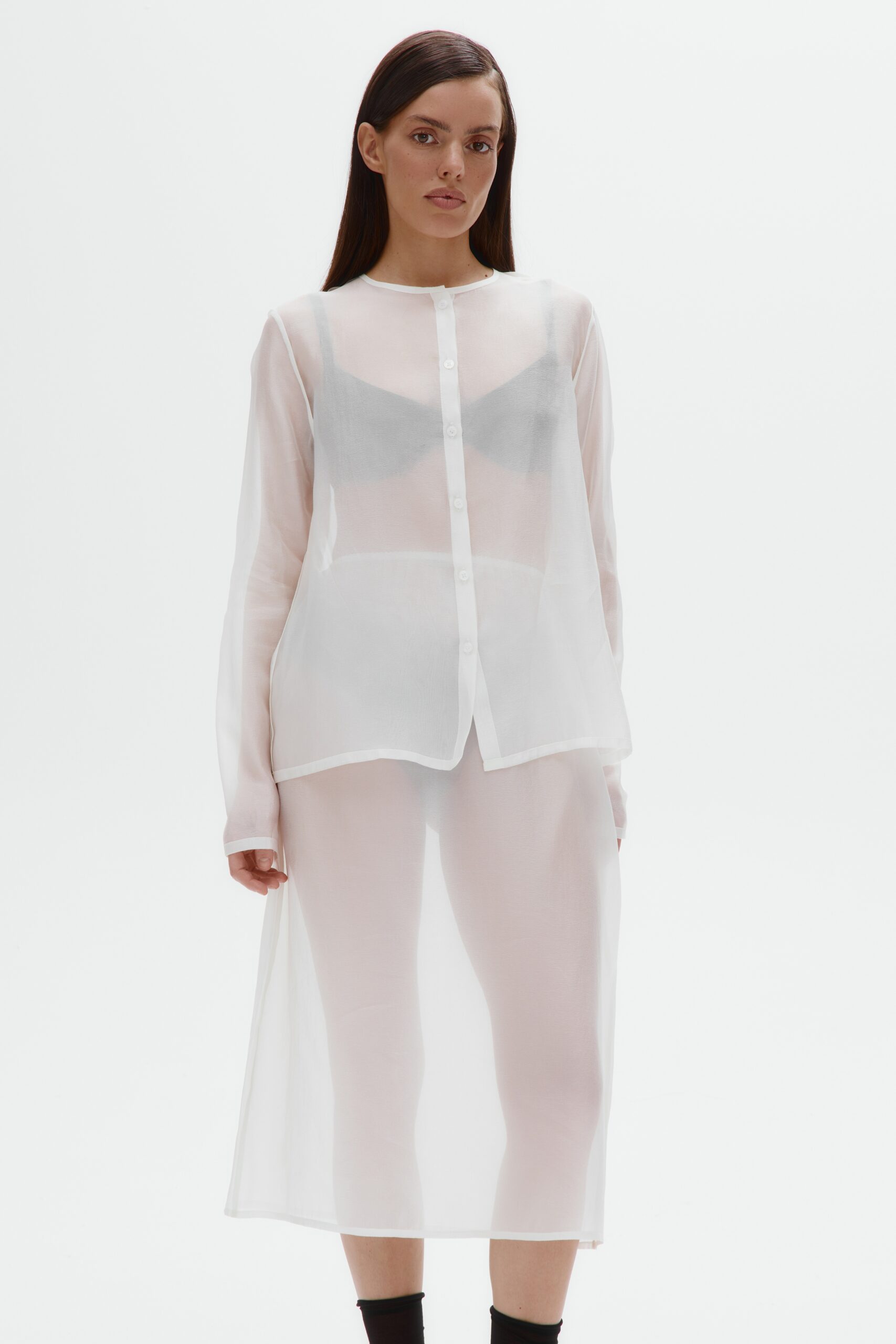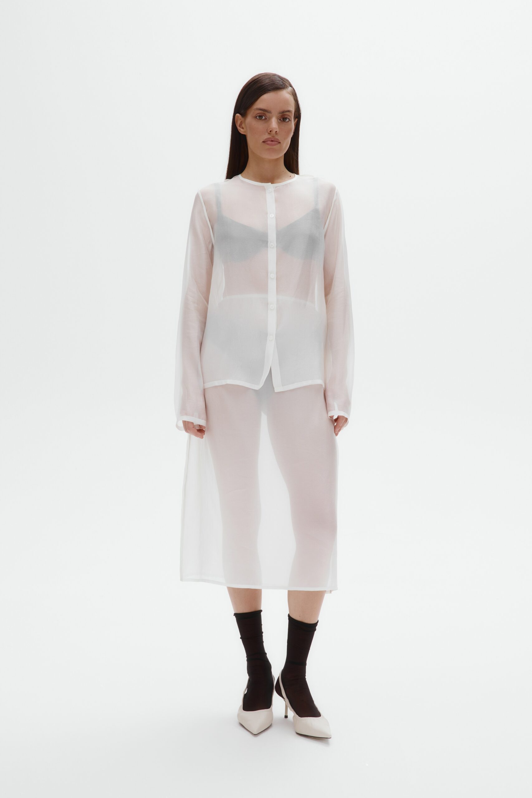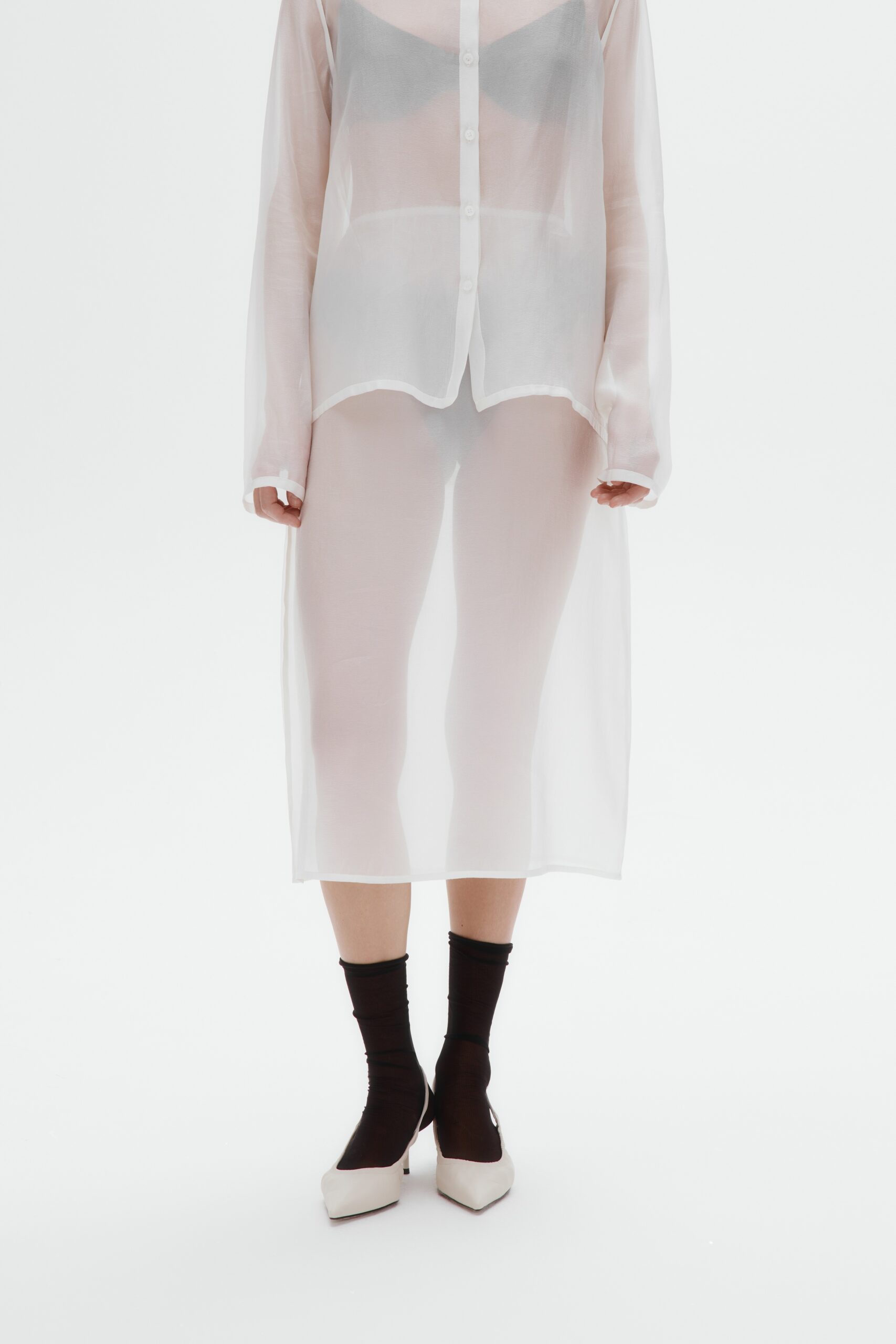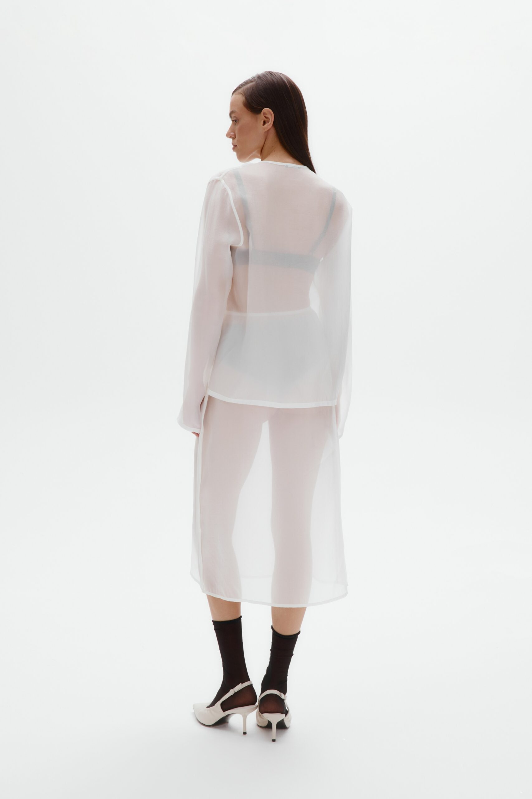 Полупрозрачная вискоза в этой модели создает эффект вуали - ткань ложится мягкими волнами, оставаясь невесомой и деликатно прикрывая силуэт. У юбки прямой крой, длина миди и пояс на ажурной бельевой резинке, отсылающей к бельевой эстетике. Юбка задумана как самостоятельная вещь, но открыта к экспериментам: носите её поверх контрастного подъюбника, платья или другой юбки - полупрозрачность позволит каждый раз собирать новый многослойный образ.
