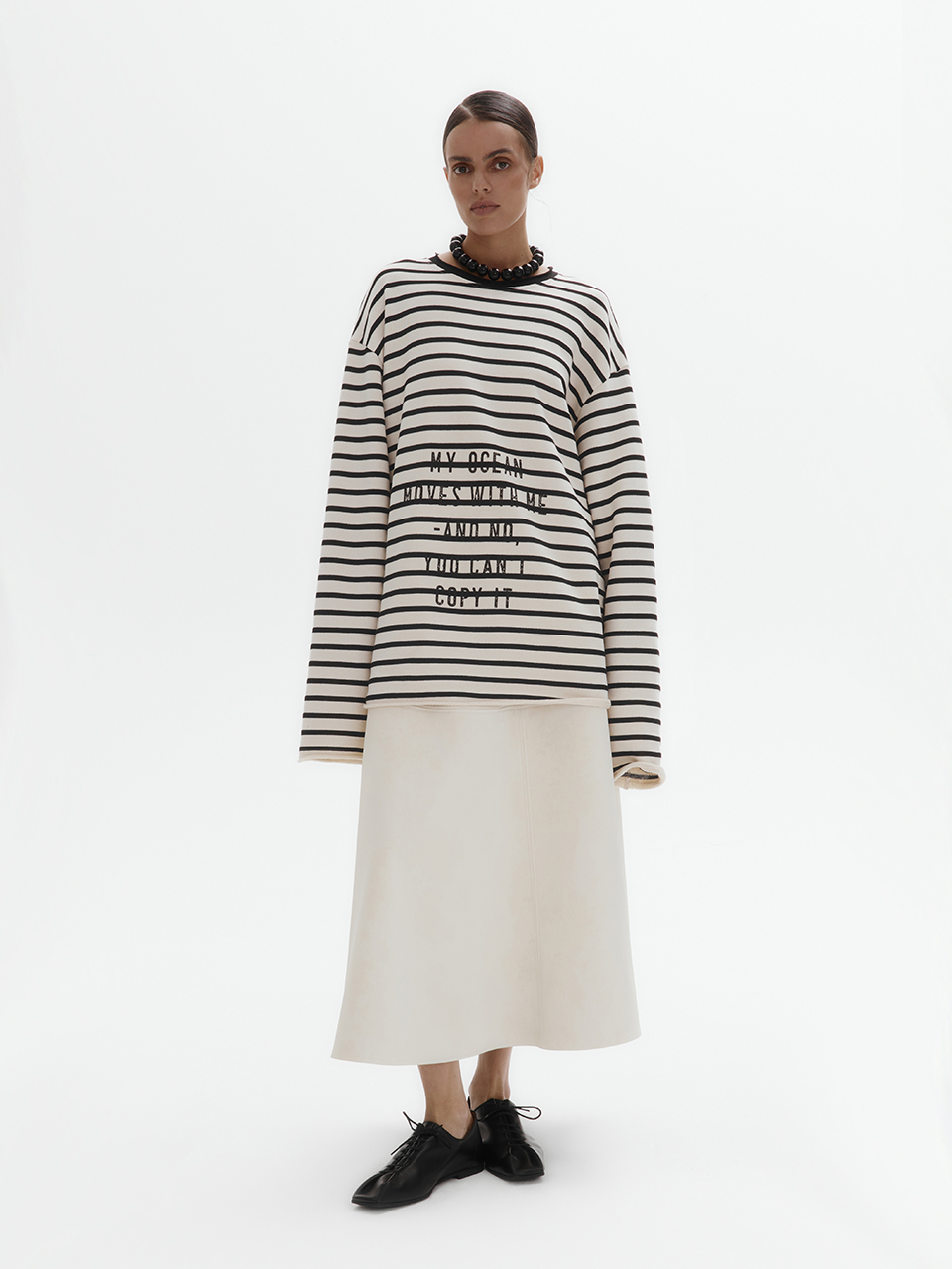 Свободный лонгслив MY OCEAN (молочный в полоску)
