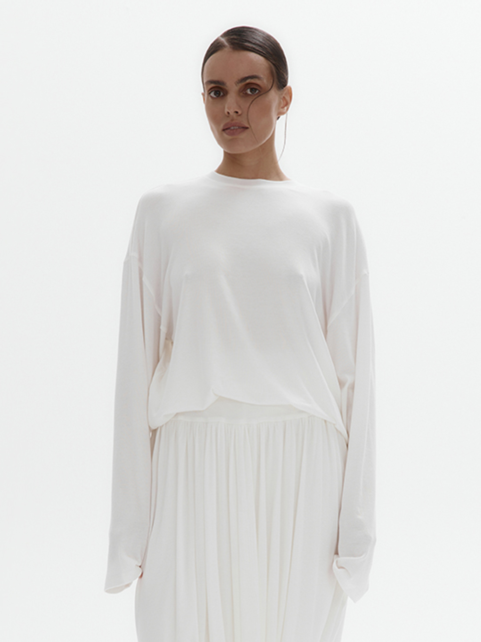 Тонкий трикотажный лонгслив с шерстью (молочный)
