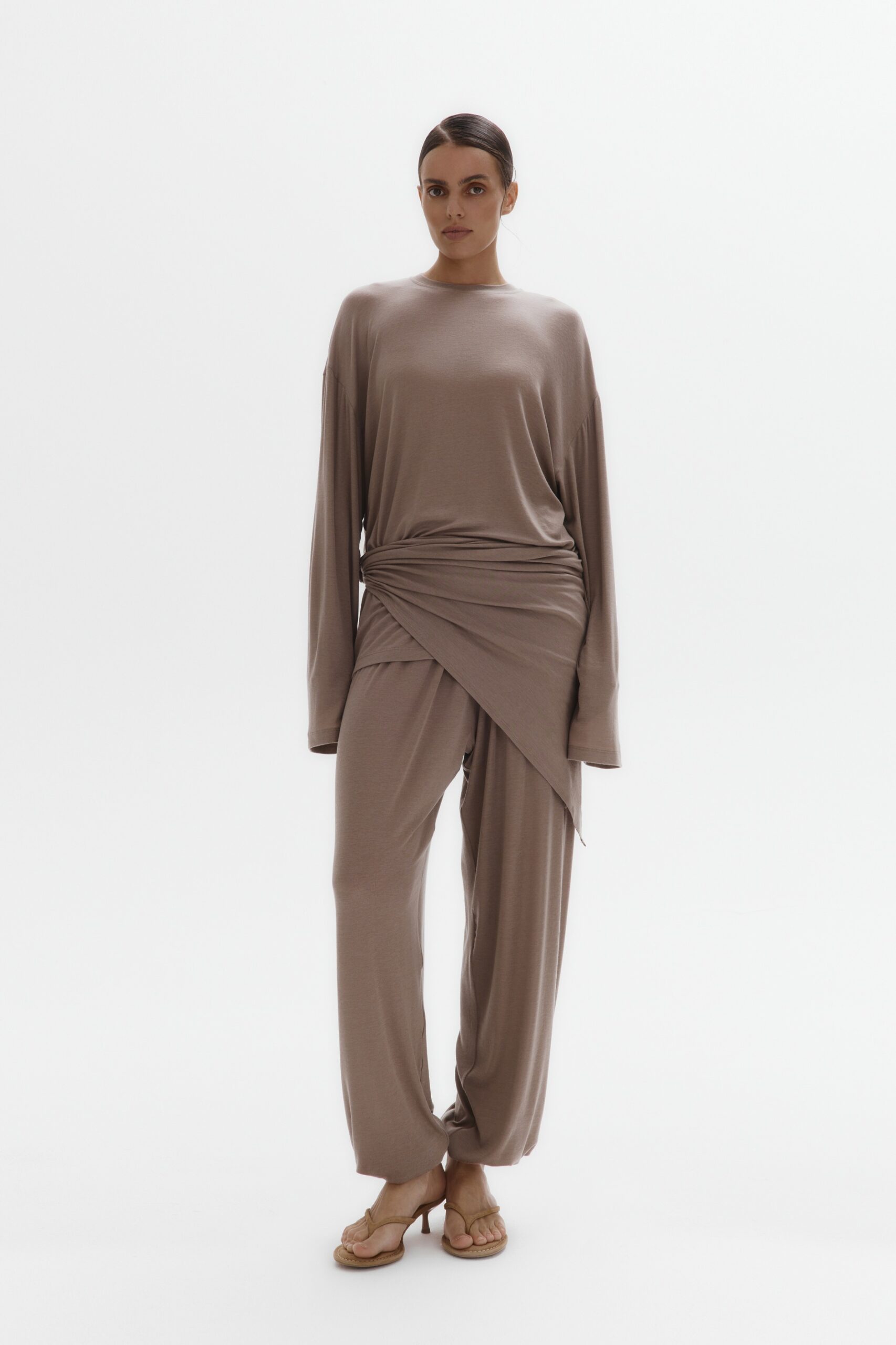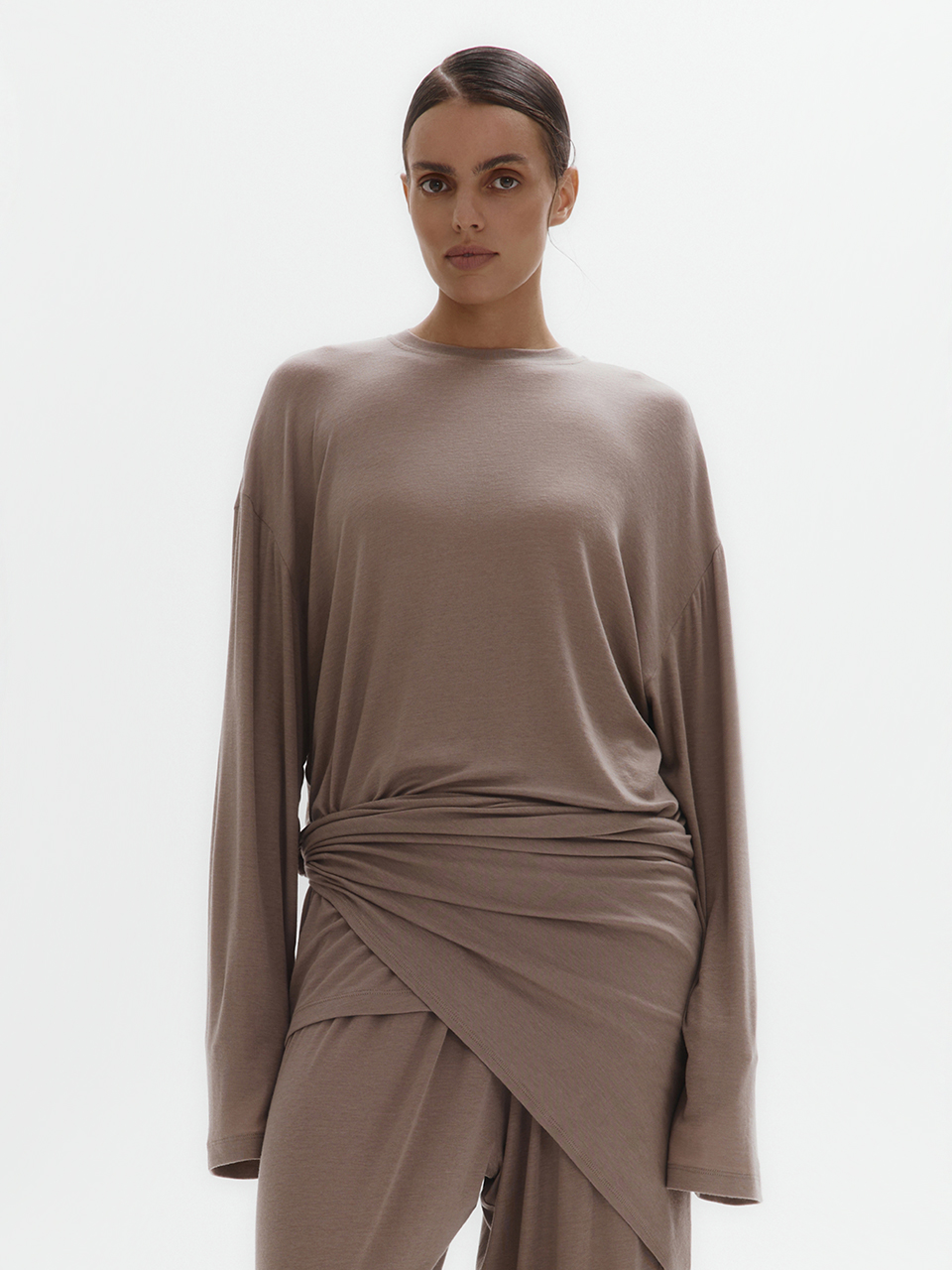 Тонкий трикотажный лонгслив с шерстью (серо-бежевый)