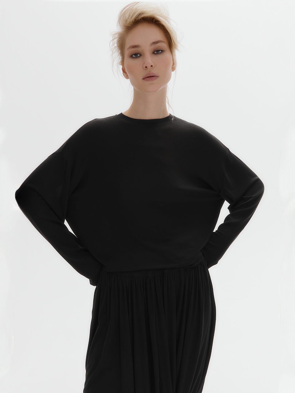 Тонкий трикотажный лонгслив с шерстью (черный)